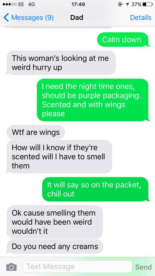 Sajten Good rapporterar om en förvirrad pappa. Hans dotter Tia Savva, 20, bad pappan att köpa med sig bindor hem från affären. Men inhandlingen blev mer komplicerad än han hade förväntat sig.