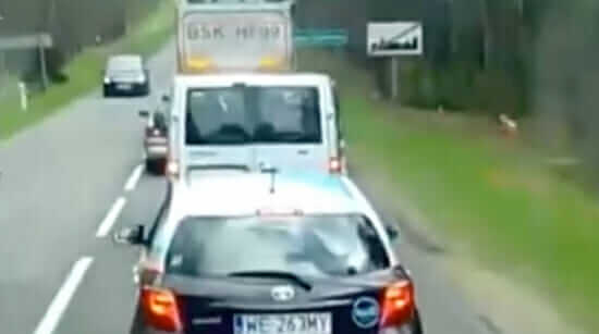 Lastbilschauffören var på väg genom staden Kuźnica när han fick syn på den nonchalanta passageraren i den grå skåpbilen.