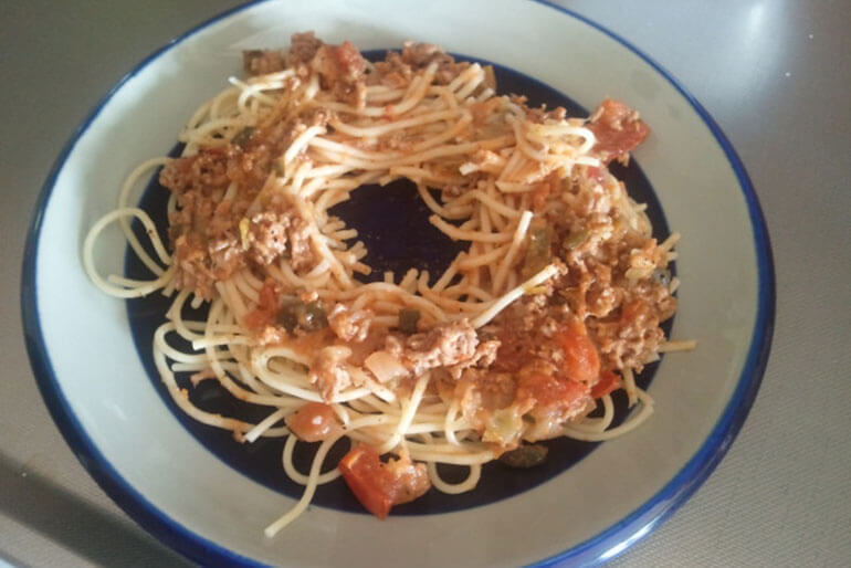Fördela maten som en cirkel på tallriken och gör sedan ett hål i mitten.