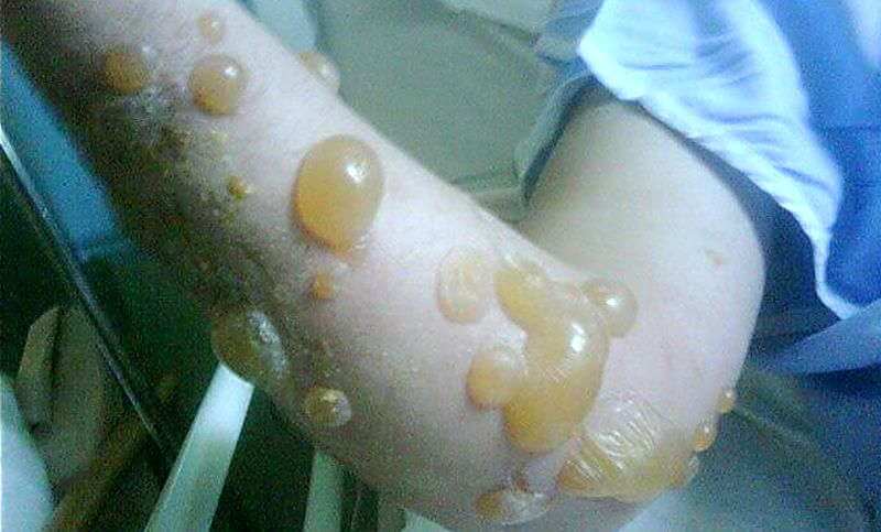Saften kan också göra stora blåsor på huden, som sedan kan lämna hemska ärrbildningar. När du blivit utsatt för detta kan din hud vara känslig i flera år.