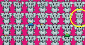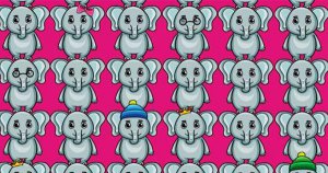 Någonstans i bilden gömmer det sig en flodhäst bland alla elefanter. Kan du hitta den i tid?