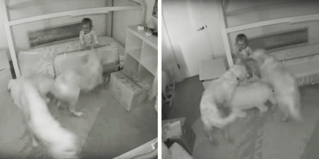 Kameran fångar de två hundarna i barnets rum – mamman tror inte sina ögon när det här händer