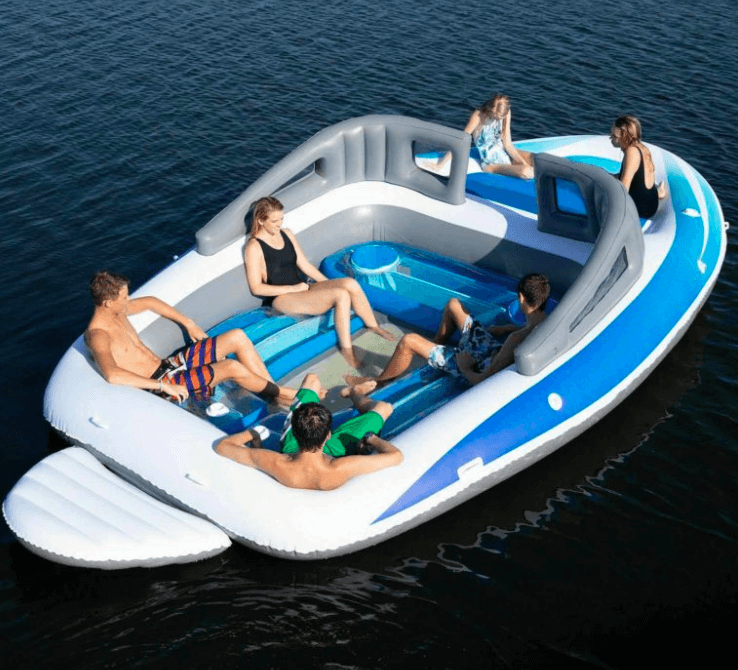 Nu kan du köpa en uppblåsbar motorbåt till fyndpris – kylskåp, soffgrupp och drinkhållare ingår