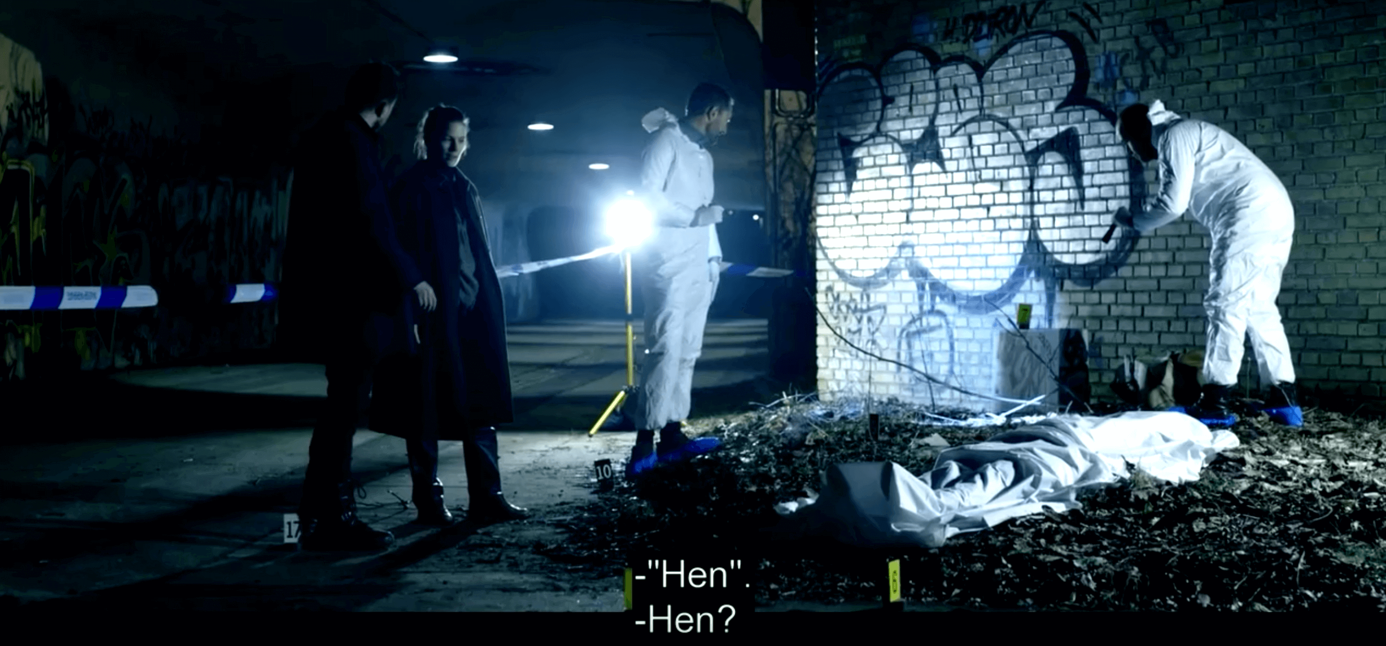 Kriminalpolisen från Danmark hinner knappt ställa några frågor om ”gärningsmannen” till den svenska förundersökningsledaren innan han får en smäll på fingrarna och hon lite halvt aggressivt svarar ”gärningsperson”!
