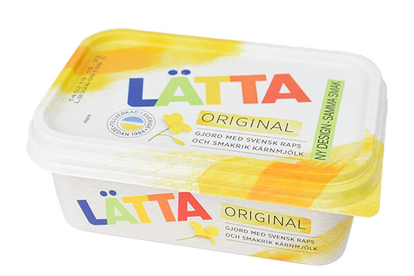 ”Det klassiska lättmargarinet Lätta stoltserar med rapsolja och kärnmjölk på flera ställen på förpackningen: ”Gjord med svensk rapsolja och smakrik kärnmjölk”. Dessutom är den är dekorerad med rapsblommor. Man lyfter också fram att margarinet är tillverkat i Sverige. Först i den finstilta texten på baksidan kan man läsa att den största ingrediensen, utöver vatten, är den betydligt mer långväga och av både miljö- och hälsoskäl ifrågasatta palmoljan.”, skriver Äkta vara.