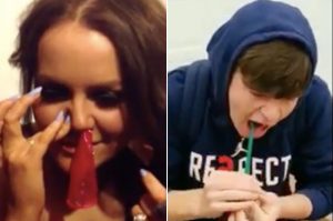 Utmaningen vid namn ”The Condom Challenge” har spridit sig som en löpeld på sociala medier och handlar om att man ska dra upp en kondom genom näsan för att sedan dra ut den genom halsen.