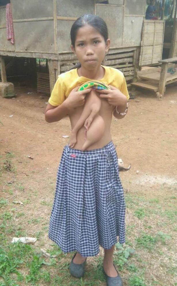 En skolflicka i Filippinerna föddes med två extra armar och missformade fingrar som stack ut från hennes överkropp. Men nu ska hon få genomgå en operation för att ta bort den oönskade tillväxten.