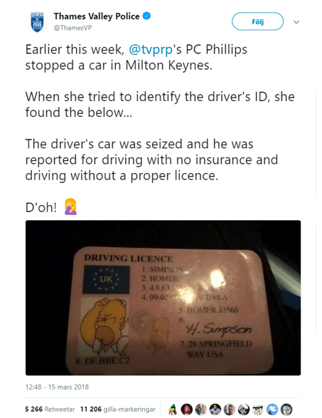 Det körkort som mannen tog upp var det här, alltså ett körkort på Homer Simpson.