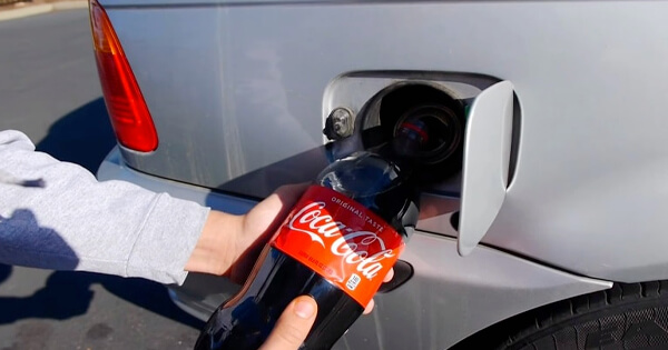 Han häller Coca-Cola i biltanken – men se vad som då händer