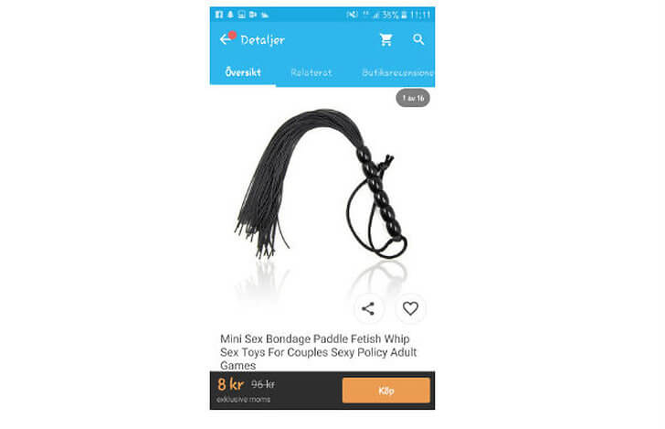 Ida, 25, beställde sexleksaker från den populära sidan Wish. Hon skulle beställa ett par handklovar när hon fick syn på något annat hon fann intressant, nämligen en piska hon också gärna ville ha.