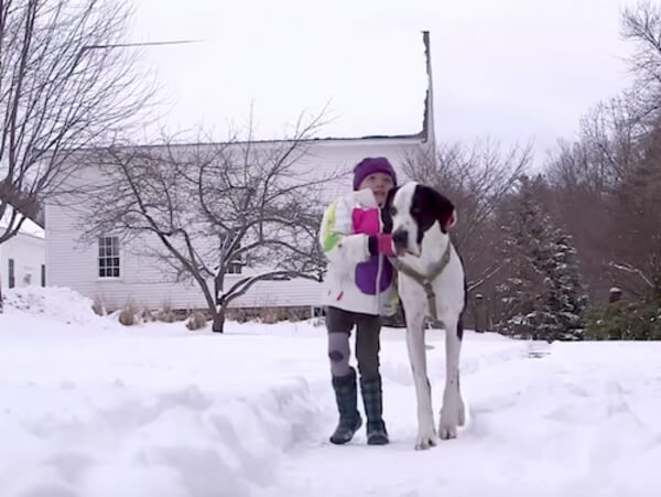 Jättehunden George kliver fram till flickan med det här på ryggen – det förändrar hela hennes liv