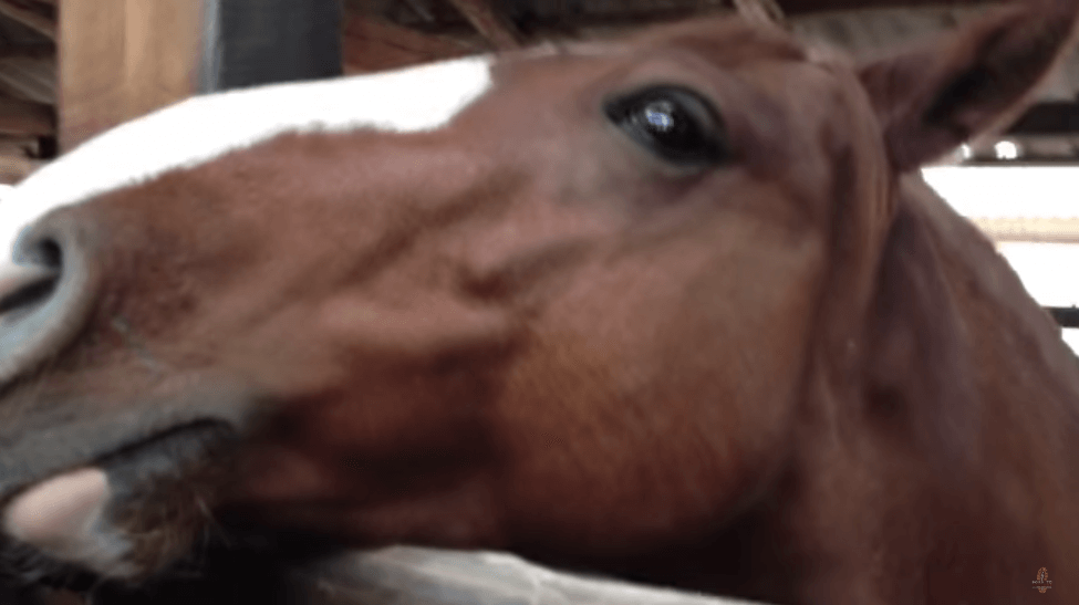 Att Greg hade valt att ställa sig för nära spiltan till stallets busigaste häst Chunchun visste han inte. När hästen inser att Greg står där och att han når honom så börjar han nafsa på honom. Enligt hästfolk som vi talat med ska det betyda att hästar gör så för att visa att man tycker om någon.