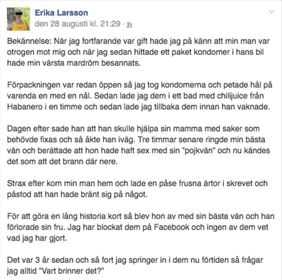 Erika skrev för några år sedan ett inlägg på Facebook:
