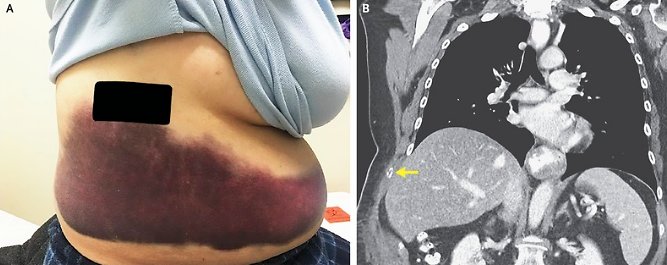 Efter en datortomografi kunde man se att kvinnan hade en förskjuten fraktur på hennes nionde revben, och att ändarna hade separerats från varandra. Efter fler tester kunde man konstatera vad som hade hänt.