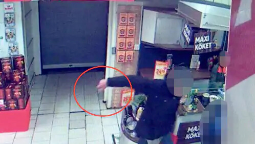 Vid lunchtid den 14 mars fångas mannen av övervakningskamerorna när han går in på Ica Maxi i Olofström.