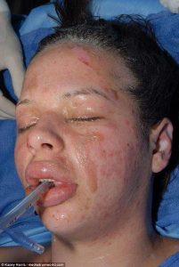 Läkarna lyckades ersätta hennes brännskadade hy med artificiell hud, efter att ha opererats i 10 dagar och legat i en medicinsk inducerad koma.