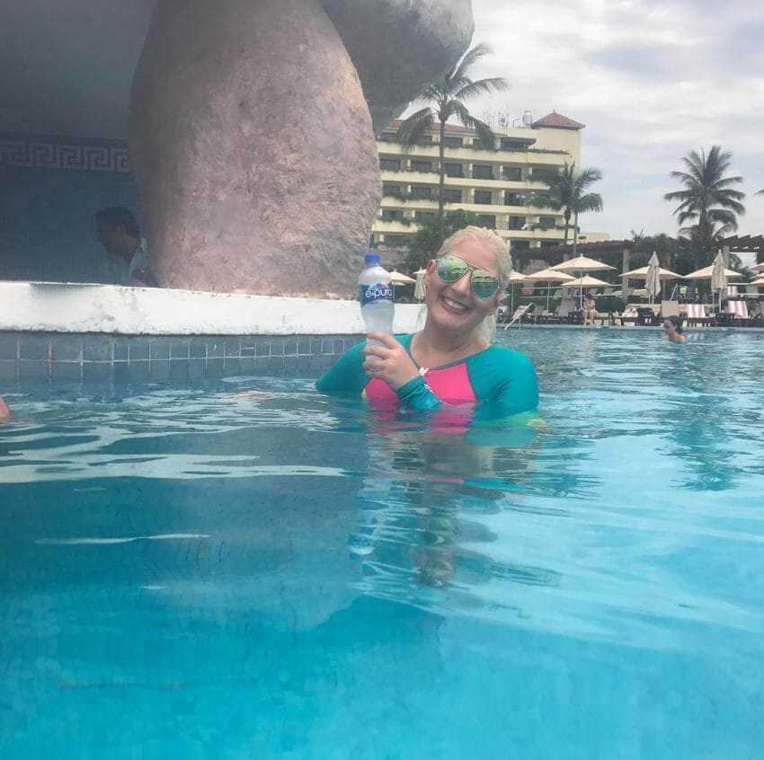 Då undrar ni vad jag gjorde? Jag drog djupa andetag, skrattade och gick ut i poolen. Det låter kanske inte så speciellt, men för mig var det ett stort ögonblick. Jag hade förändrats. Jag var inte samma kvinna som jag brukade vara förut.