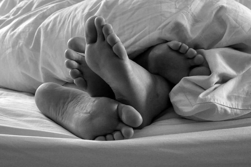 ” En morgon kom jag nerför trapporna och såg denna exakta scen, min 17-åring var med en ung man. De sov efter en natt av vad som måste ha varit ’hårt arbete’. Jag gjorde frukost mycket tyst, gick tillbaka upp och berättade för min fru, min son och andra (yngsta) dotter att vara mycket tysta för folk sov fortfarande. Vårt matbord är på andra sidan rummet, ungefär 7 meter från soffan men mitt framför den.