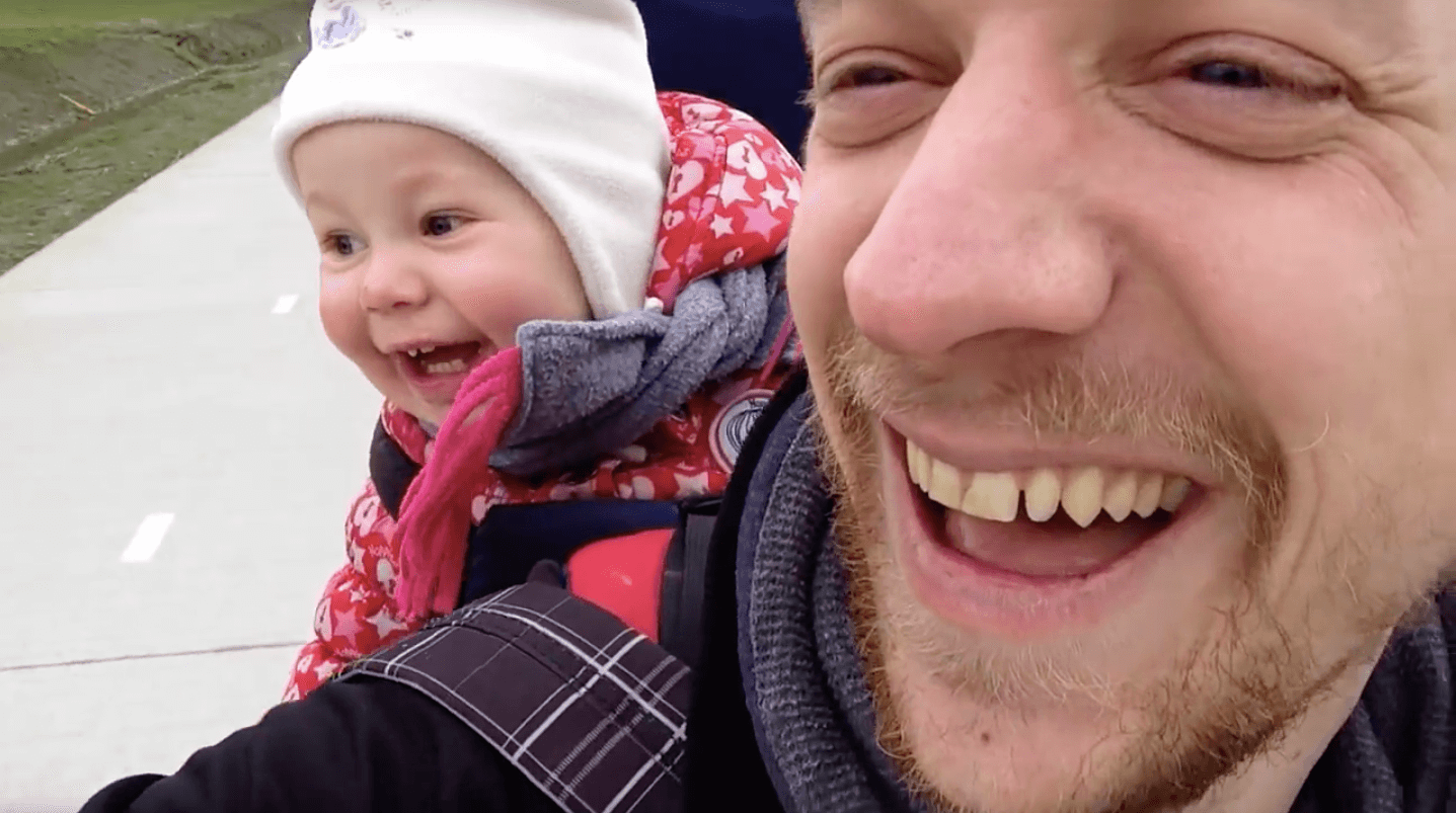 Men varför skrattar hon så mycket? Jo, det är på grund av hennes pappa. Pappor vet alltid hur man får sina döttrar på bättre humör och denna man är inget undantag.