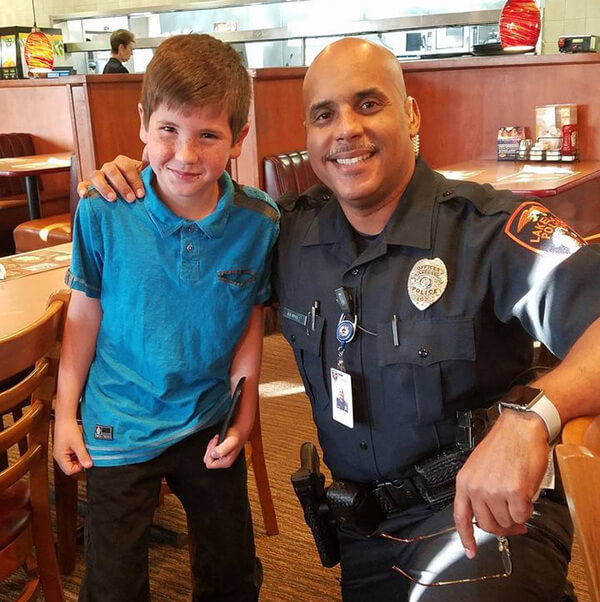 Noah som är 9 år gammal såg direkt när polisen kom förbi på restaurangen. Han ville gärna gå fram till honom och byta några ord men Noah visste inte hur han skulle gå till väga för att få kontakt.