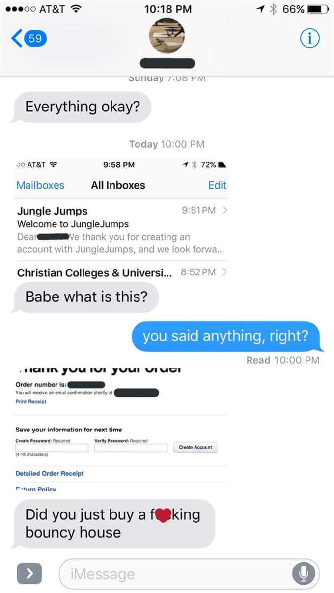 Leagan som har publicerat denna sms-konversation på Twitter hade beställt ett slott. Och inte vilket slott som helst – nämligen ett uppblåsbart. Du vet, en sån där hoppborg! Det önskar sig alla människor, visst?
