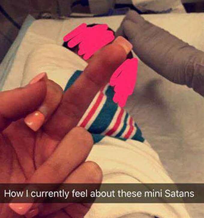 I en bild som är från Snapchat visar hur en av de anställda ger fingret till en av de nyfödda bebisarna. Till bilden så har den anställde valt att lägga till texten: ”Så här känner jag kring de här små jävlarna”.